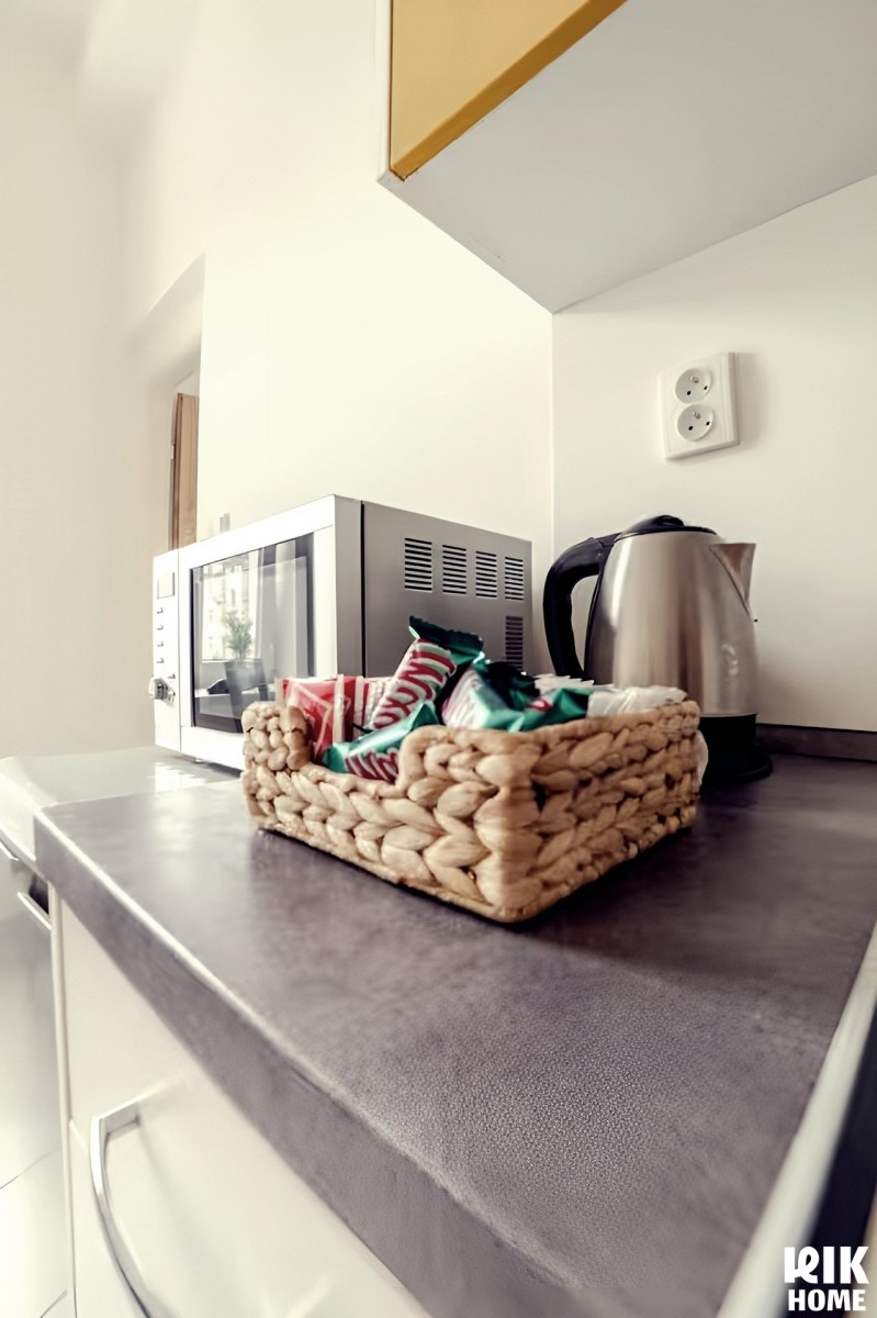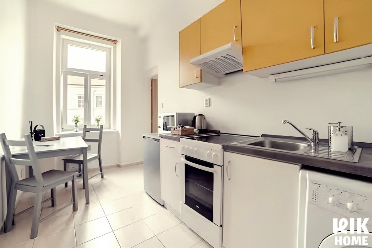 Byt je plně vybavený – včetně nábytku, elektrospotřebičů a všech doplňků potřebných pro úspěšný provoz krátkodobého ubytování. Interiér je vkusně zařízený a zahrnuje kuchyňský kout, ložnici a koupelnu.