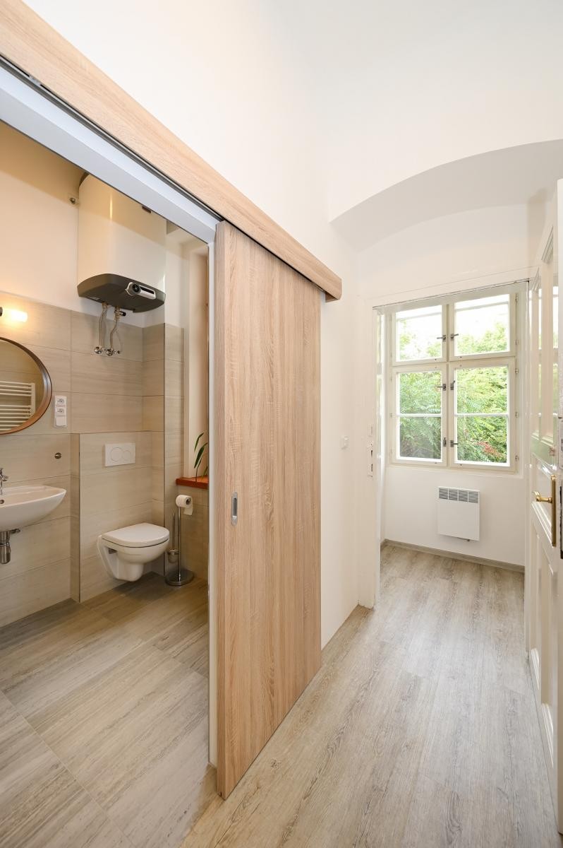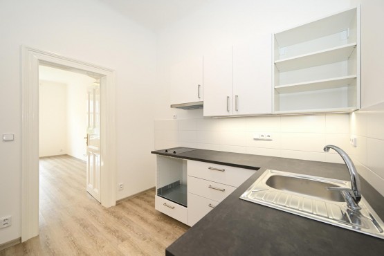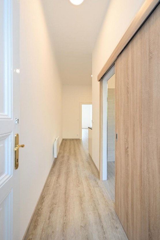 Pronájem zcela nové rekonstrukce nezařízeného bytu 1+1 o velikosti 37 m2 na druhém patře bez výtahu.