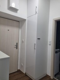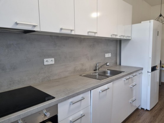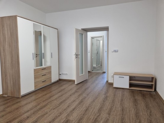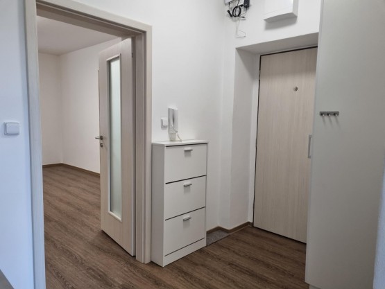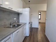 Pronájem bytu 1+1 v ulici Pavla Hanuše. Kuchyně zařízená spotřebiči, jinak bez vybavení.