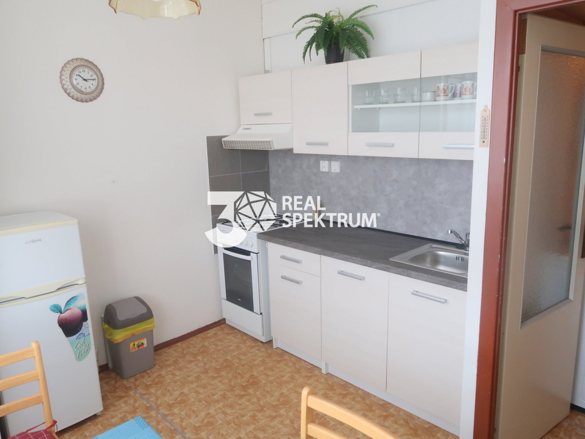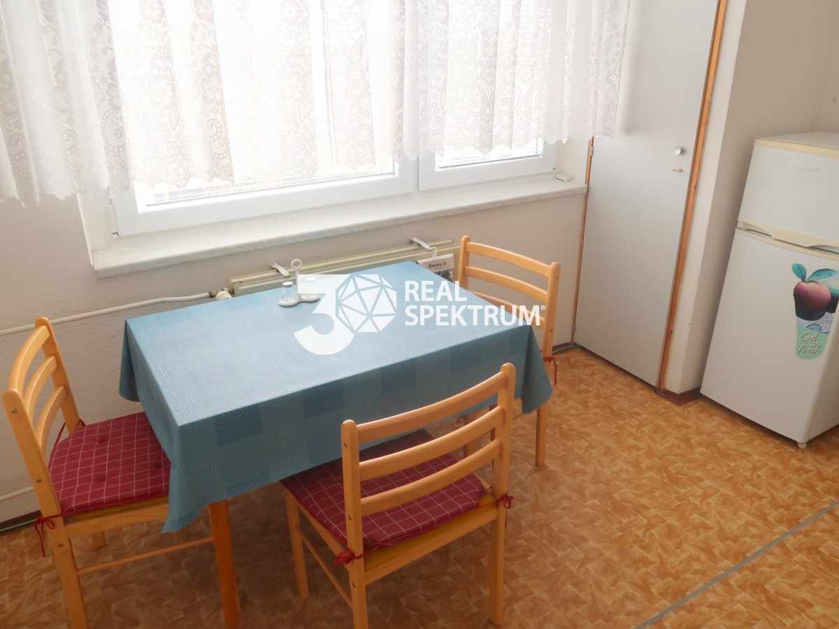 Byt 1+1 o velikosti 40m2. Pokoj má 20m2. Kuchyně (nová) je samostatná i s jídelním koutem. Koupelna se sprchovým koutem průchozí na sociální zařízení WC. Vybavení dle foto. Majitel si v bytě nepřeje děti, kuřáky, zvířata a zřízení TP. Majitel si přeje pouze česky mluvícího nájemníka. Byt je vhodný maximálně pro 2 osoby. Vratná kauce 15. 000, - kč.