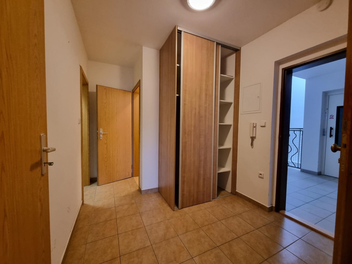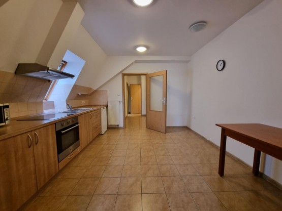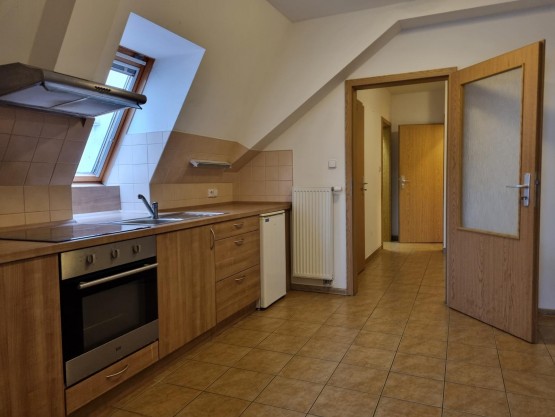 Byt je částečně zařízený. Kuchyně kompletně vybavená spotřebiči včetně ledničky.