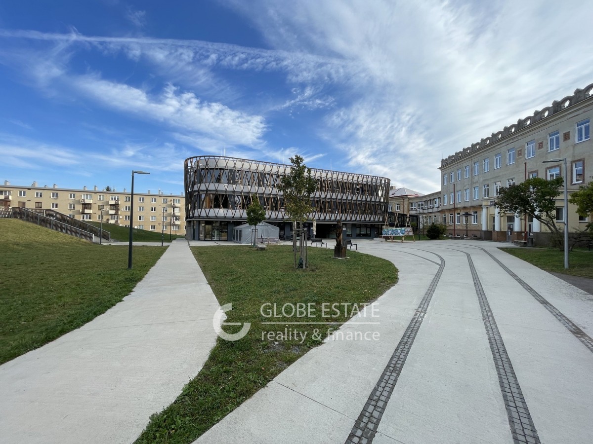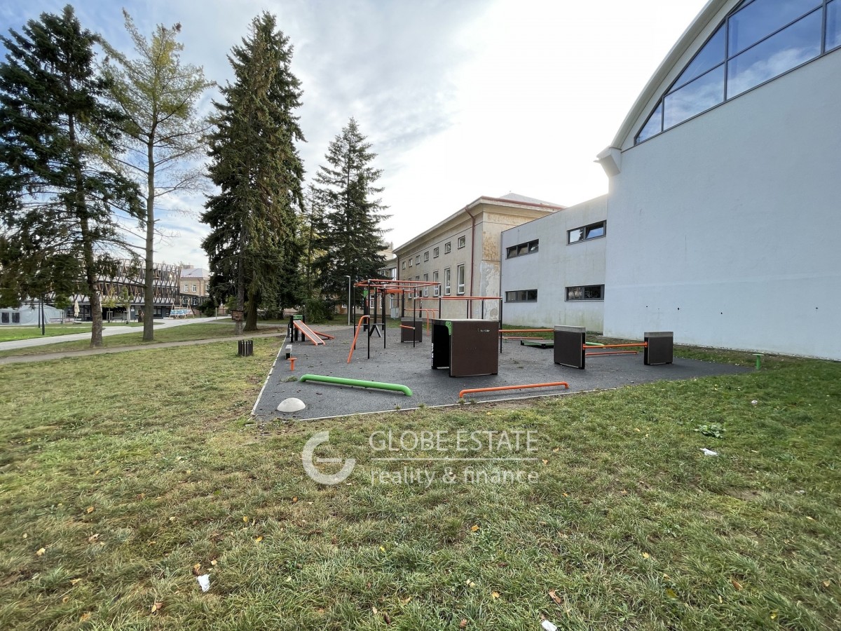 • výhled je do zelené a stromy vysázené plochy mezi domem a super moderní základní školou,