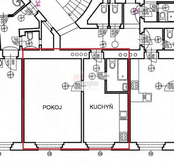 1+1, 42 m2, cihlová, OV, 3. podlaží