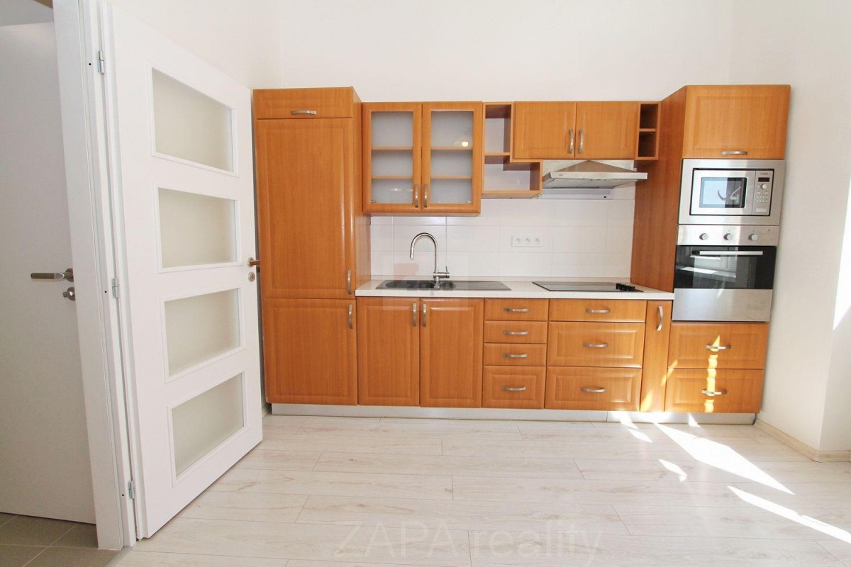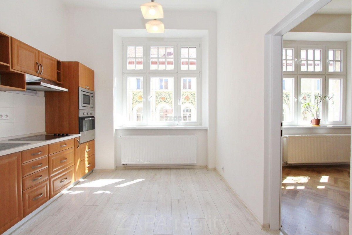 Vybavení: zadní pokoj je nezařízený, v předním pokoji zařízená kuchyně s varnou deskou, horkovzdušnou troubou, mikrovlnnou troubou a vestavěnou lednicí. Topení plynové etážové - vlastní kotel v koupelně. Součástí bytu je úložný prostor ve sníženém stropu předsíně. Byt je vhodný pro nekuřáky, ideálně bez psa. Měsíční poplatky 1. 000, - Kč/osobu (vodné, stočné, úklid spol. prostor) + elektřina a plyn. Kauce 15. 000, - Kč, provize 15. 000, - Kč. K nastěhování ihned, volné dlouhodobě.