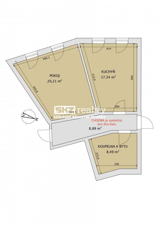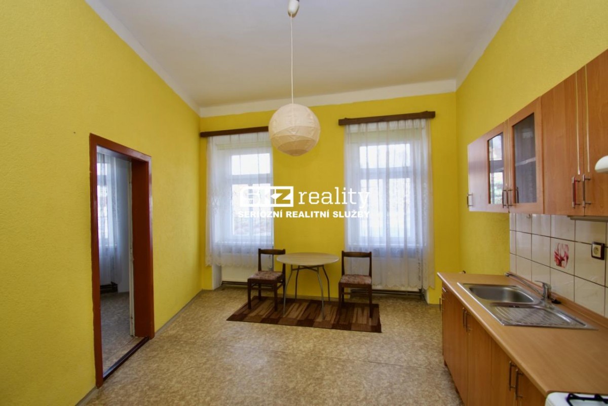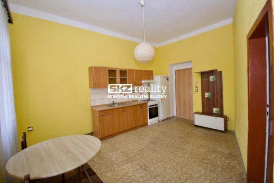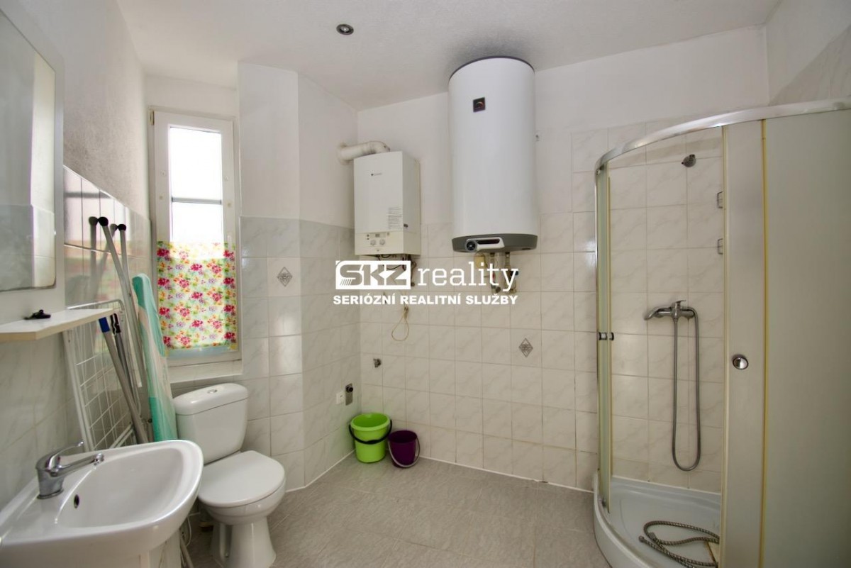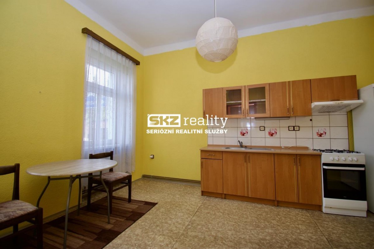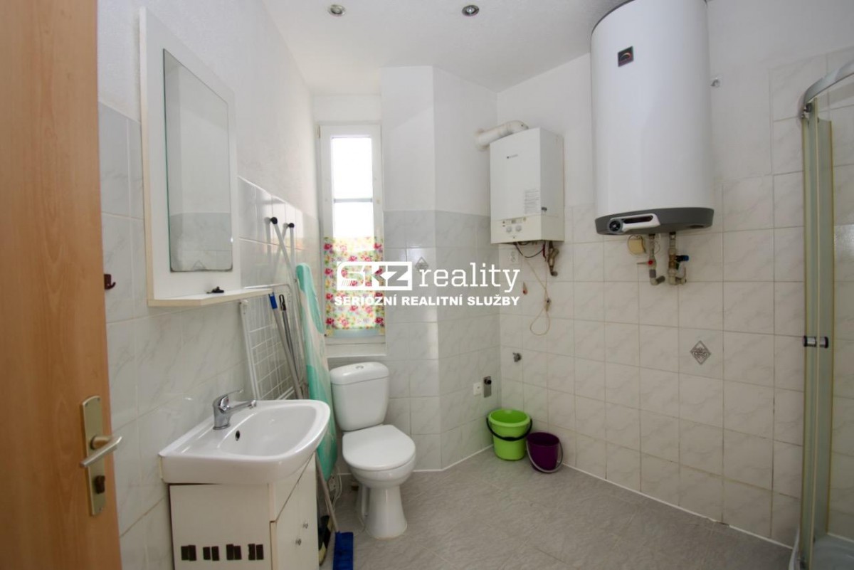 SKZ REALITY nabízí pronájem bytu 1+1 v přízemí bytového domu nedaleko centra. Byt je vybaven kuchyňskou linkou, plynovým kotlem pro vytápění a bojlerem. Koupelna je přes úzkou chodb...u (3 kroky) mimo byt (viz půdorys) a je vybavena sprchovým koutem, bojlerem, sociální zařízení WC a prostorem pro pračku. Poplatky: nájemné 6000, - Kč, vodné stočné - elektřina na chodbě - popelnice 1200Kč, kauce 15 000Kč, zálohy na plyn cca 3000Kč, zálohy na elektřinu 1400Kč, provize 6000Kč.