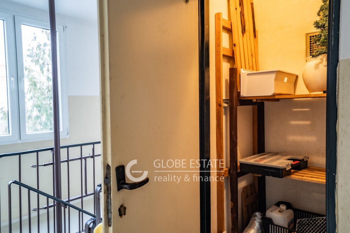 • další místnost už je pak skladová, a těch tu je víc. Jedna špajzka je před vstupem do bytu a pak super fajn sklep v přízemí domu, ideální na kolo a další věci na sklad