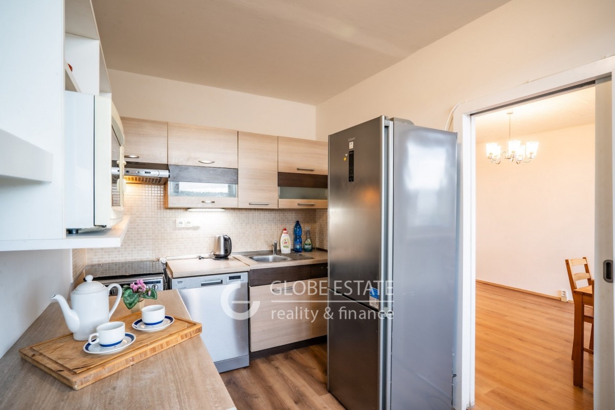 • postarší kuchyně splní svůj účel. Je zde dost úložného prostoru, myčka, lednice, a vejde se i menší jídelní stůl