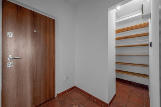 Byt se skládá z plně vybavené kuchyňské linky (lednice, plynový sporák, trouba, digestoř) ložnice, koupelny s sociální zařízení WC (sprchový kout, pračka) a prostorné šatny. K bytu náleží i balkón přístupný ze společné chodby domu. Kromě klasického zděného sklepa byt k bytu náleží i suteréní místnost, která lze využívat jako sklad, osobní fitness atd.