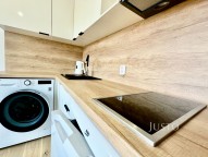 • Spotřebiče: Zabudovaná lednice, pračka se sušičkou, varná deska a digestoř.