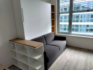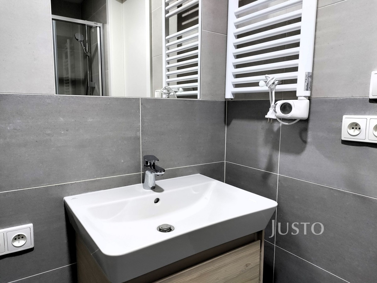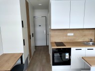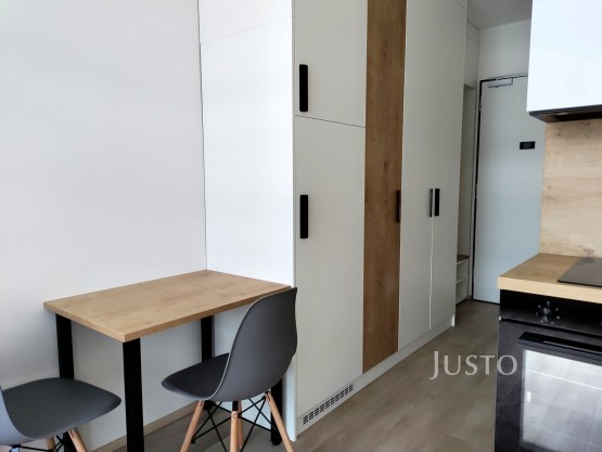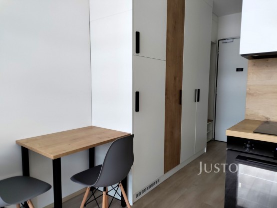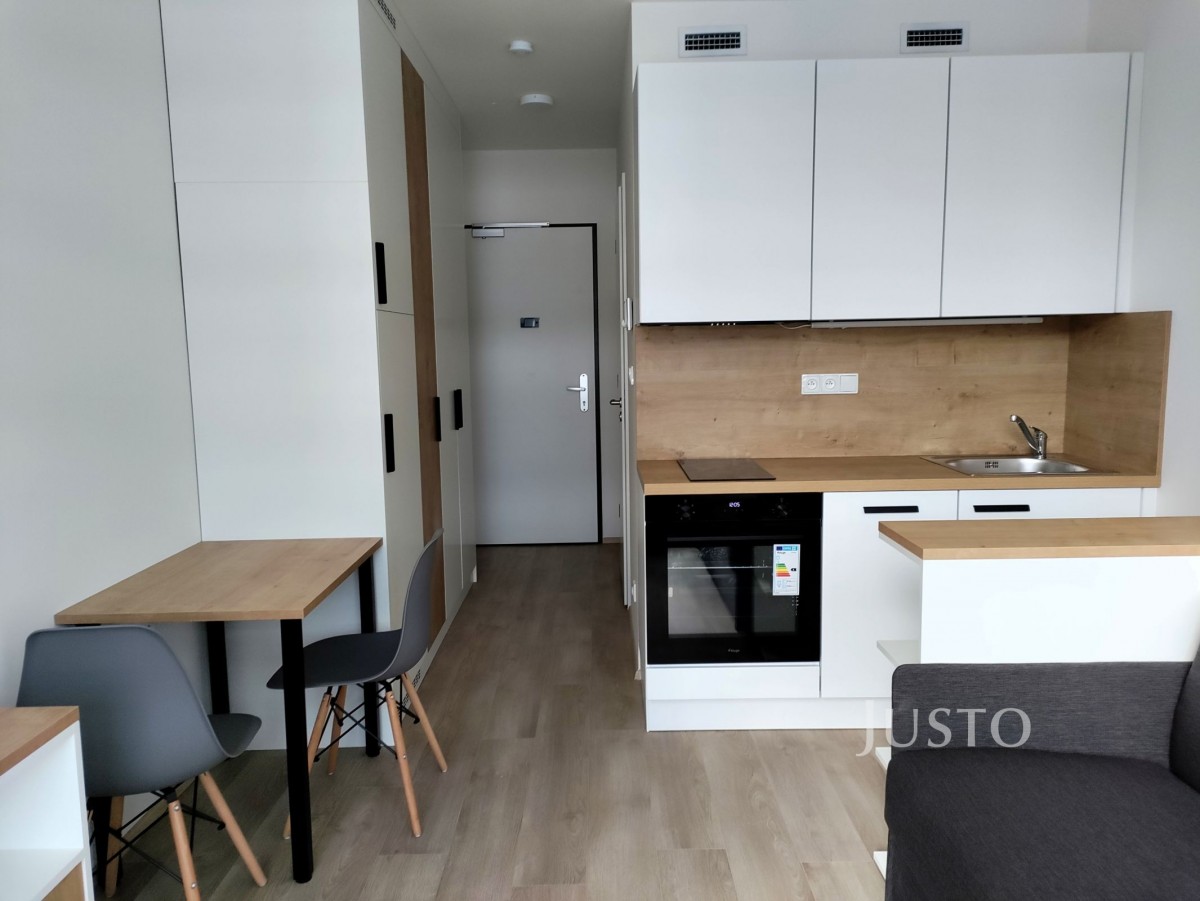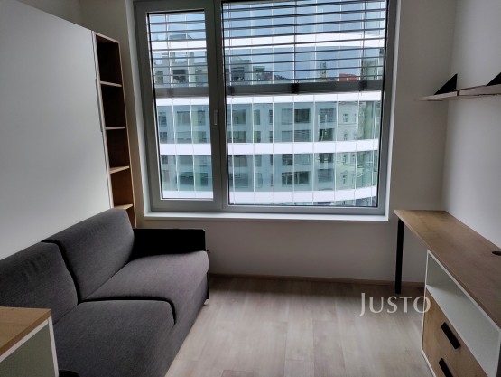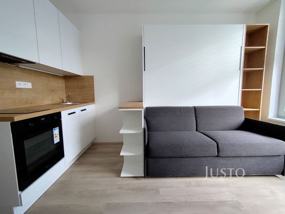 V zastoupení majitele vám nabízíme k pronájmu zařízený nový byt 1+KK v Praze – Smíchov, roh ulice Plzeňská a Mozartova. Byt je v sedmém patře nového moderního domu včetně výtahu v projektu MyMozart. Dispozice bytu: vstupn...í chodba s úložnými šatními prostory je otevřená do obývacího prostoru, jež je zařízen kuchyňskou linkou včetně vestavěných spotřebičů, malou sedací soupravou, skříňkami, stolek se dvěma židlemi a krytým výklopným lůžkem. V koupelně, která je společná s sociální zařízení WC, je sprchový kout, umyvadlo se skříňkou, zrcadlo a přípojka na pračku. Byt je vytápěn stropním systémem včetně rekuperace. Okna jsou opatřena protihlukovou fólií. V posledním patře domu je terasa pro všechny obyvatele domu s grilem a posezením. Pro pohodlné bydlení je byt vhodný pro jednu osobu. Bytový projekt je v atraktivní lokalitě s centru Smíchova v blízkosti nákupních center a s výbornou dostupností MHD.
