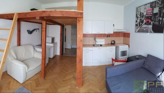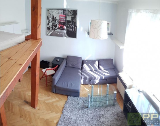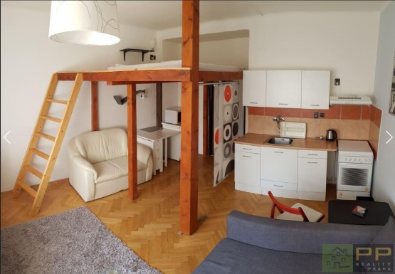 ID: 210801. Pronájem zařízené garsoniéry ve 2. patře cihlového domu. Byt je tichý, okna jsou orientována do zeleně. V pokoji je patro na spaní s matrací. Výborná dostupnost MHD (metro Palmovka 300 metrů). K nastěhování... ihned.