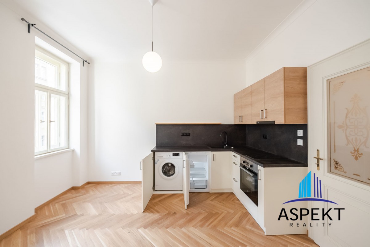 Nabízím k pronájmu nový, nezařízený byt 1+kk, 25m2 na Letné. Byt se nachází v druhém patře v secesním domě který stejně jako byt prošel kompletní rekonstrukcí.