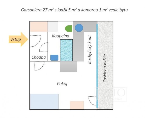 V zastoupení majitele pronájem bytu 1+kk (27 m²) s prosklenou lodžií (5 m²) na Praze 4 v blízkosti metra Pankrác.