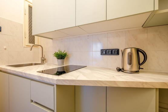 Dispozici bytu tvoří vstupní část, kam byla na míru vyrobena moderní kuchyňská linka, dále prostorný pokoj s jídelním/pracovním koutem, odpočinkovou částí, hlubokou dřevěnou vestavěnou skříní, koupelna se sprchovým koutem, toaleta je samostatná. Kuchyňská linka vybavená spotřebiči (myčka, varná deska, rychlovarná konvice), v bytě je i lednička. Na podlaze dubové parketová podlaha a praktická dlažba. Patro je velké 8 m2, je tam umístěna komoda a matrace na spaní. Sedačka a křeslo nejsou součástí. Výhled je orientován do klidné, jednosměrné ulice se vzrostlými stromy a předzahrádkami. Byt je ideální pro jednotlivce nebo pár. Byt bude připraven čistý a celkově uklizený od 27. 4.