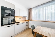 Byt ve vysokém standardu je pronajímán kompletně vybavený. Kuchyňská linka s vestavěnými spotřebiči (indukční varná deska, horkovzdušná trouba, mikrovlnná trouba, digestoř, lednice, mrazák, myčka, varná konvice) jídelní stůl s židlemi, manželská postel, sedací souprava, konferenční stolek, smart TV, skříně a police, pracovní stůl s židlí, v chodbě vestavěná skříň, v koupelně pračka a sušička.