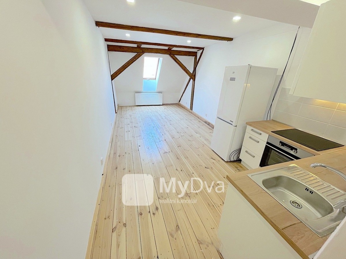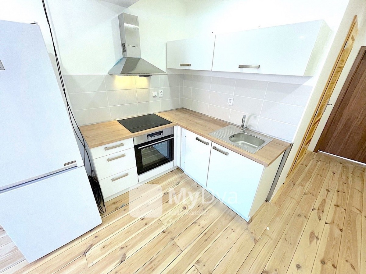 Nabízíme k pronájmu novostavbu bytu o velikosti 28 m2 a o dispozici 1+kk. Byt se nachází ve 2. nadzemním podlaží cihlového domu v centru města. Sestává z obývacího p...okoje spojeného s kuchyní, kdy kuchyňská linka je plně vybavena, včetně lednice s mrazákém. Koupelna je se sprchovým koutem. Parkovat lze před domem.