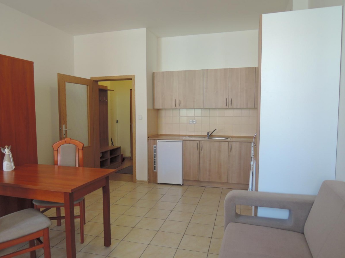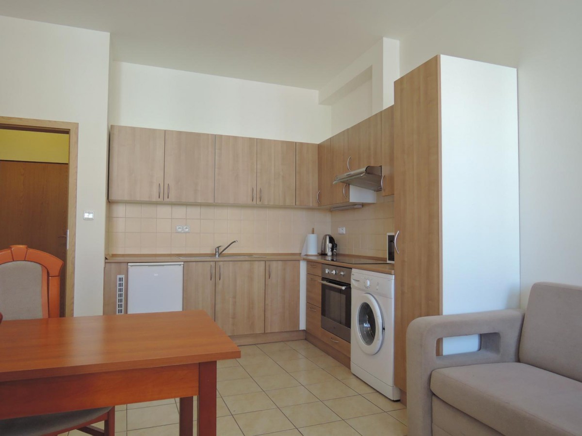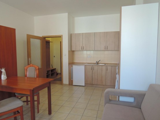 Byt je kompletně vybavený, kuchyně je zařízená spotřebiči včetně ledničky.
