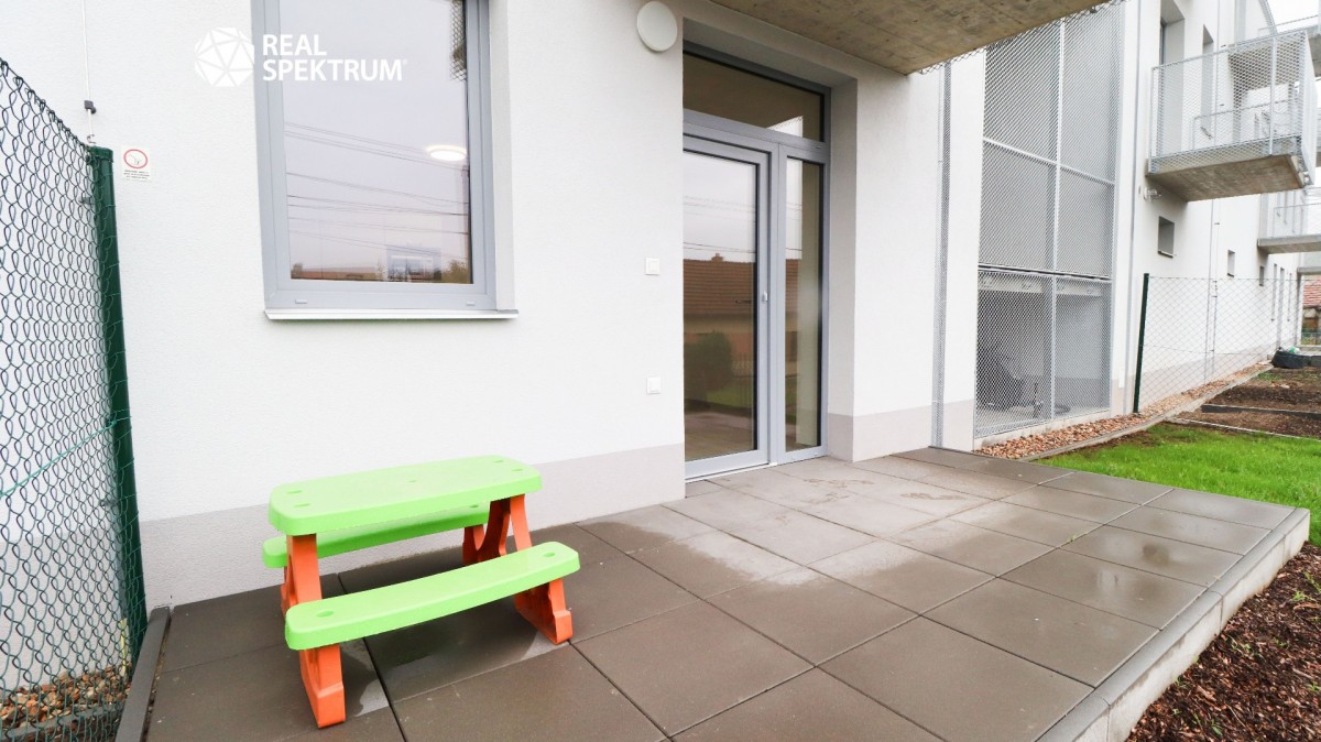 Byt 1+kk, vstupní chodba (4, 9 m²) s přípravou na pračku, obývací pokoj s kuchyňským koutem (23 m²) je vybaven el. troubou, varnou deskou, mikrovlnkou, digestoří, koupelna + sociální zařízení WC (4, 6 m²), terasa se zahrádkou (36 m²). Součástí pronájmu je sklep a 1 krát vyhrazené parkovací stání. V případě zájmu je možné si pronajmout druhé parkovací stání. Bližší informace v RK.