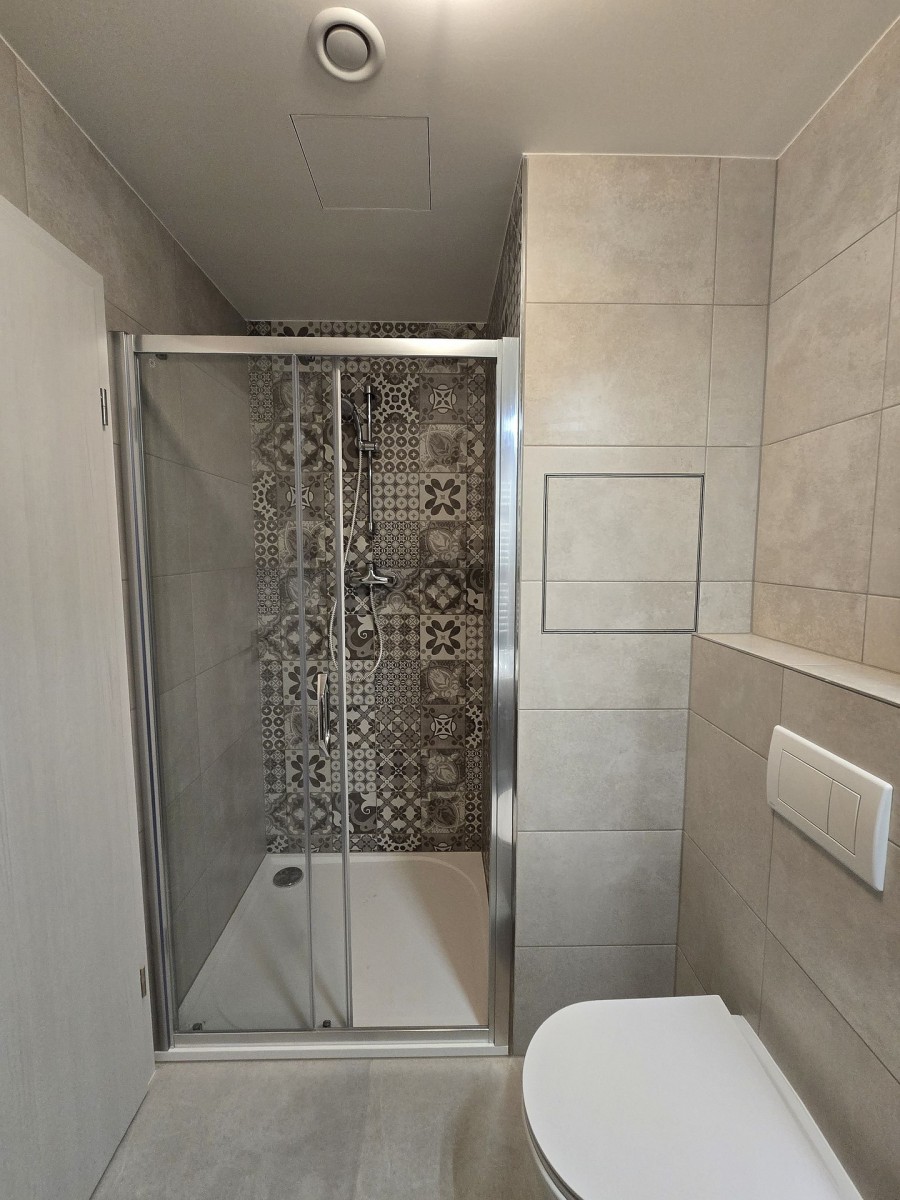 Vše, co potřebujete ke kvalitnímu bydlení. V kuchyňské části je kuchyňská linka vybavena vestavěnými spotřebiči jako je elektrická indukční varná deska, elektrická trouba, myčka, digestoř atd. V obytné části jsou velká okna zajišťující dostatek denního světla a příjemný výhled do okolí. V koupelně se sprchovým koutem, umyvadlem, topným žebříkem a toaletou je prostor pro umístění pračky. Velmi atraktivní je kombinace barev obkladů a dlažeb. Jedná se o velice vkusně připravený byt.