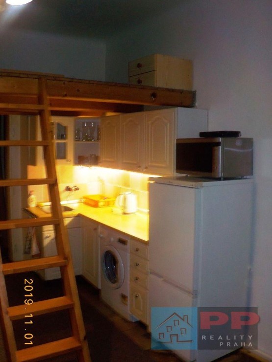 ID: 051101. Nabízíme k pronájmu zařízený byt 1+kk, 30 m2 v přízemí cihlového domu. Okna jsou situována do vnitrobloku, kde je velká zahrada, kterou lze využívat. ... Zařízení: kuchyňská linka, sporák, lednice, pračka, mikrovlnná trouba, vestavné patro na spaní, pohovka, křeslo, skříň a sprchový kout. Toaleta je na chodbě mimo byt, ale určená pouze pro tento byt a je pod uzamčením. Topení - akumulační kamna. Dobrá dopravní dostupnost, 11 minut tramvají na Karlovo náměstí. Měsíční nájem je 11. 500 Kč + poplatky cca 2. 000 Kč. Volné ihned. Malé zvíře nevadí. Vhodné pro 1 - 2 osoby.