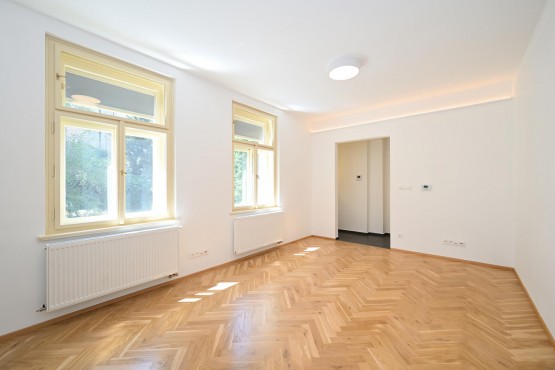 Zcela nová rekonstrukce byt 1+kk s jihozápadními okny do zahrady, která je přístupná pro obyvatele domu. Velmi tichý byt, stejně tak se v celém domě dbá na klid.