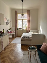 Dlouhodobý pronájem garsoniery v činžovním domě v ulici Pplk. Sochora poblíž Strossmayerova náměstí a stanice metra Vltavská. Nemovitost se nachází v 4. patře bez výtahu a nabízí se jako nezařízená nábytkem. Vybaveno kuchyň...skou linkou s 2 indukčními plotýnkami, ve vstupní chodbě vestavěná skříň, možnost odkoupení pračky a dvoulůžka od stávajícího nájemníka. Na zemi parketová podlaha a dlažba, vytápění vlastním elektrickým kotlem, bojler. Garsoniera je orientována na jih , dispozičně pokoj, koupelna se sprchovým koutem, samostatné sociální zařízení WC a vstupní chodba. Vhodné pro 1 osobu, popřípadě pár. Vratná kauce 2 nájmů, možno na splátky, jeden nájem provize pro RK. Oblíbená lokalita poblíž Stromovky a Letenských sadů, v blízkém okolí množství sportovních a kulturních aktivit. Volné od 1. 4. , prohlídky po dohodě v průběhu března.