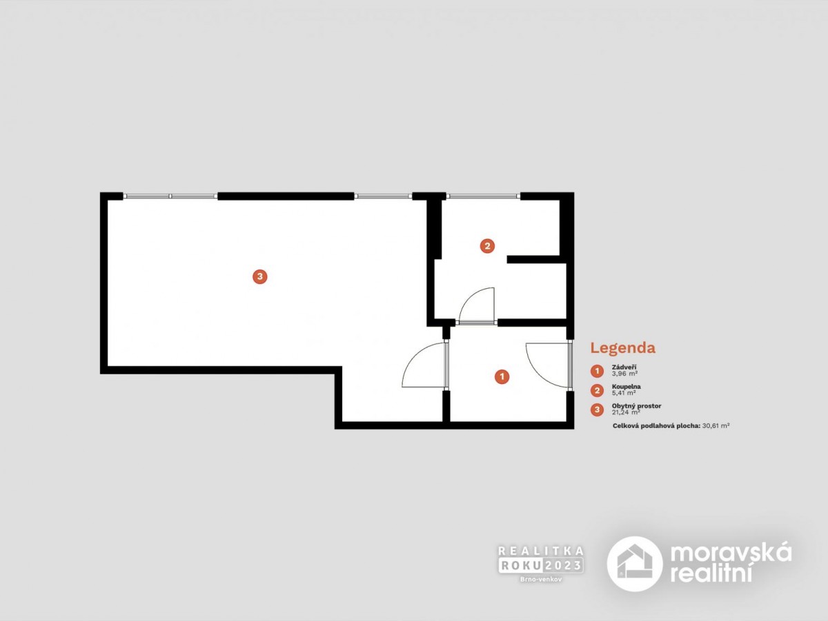 - dispozice bytu (1+kk): Byt se skládá z obývacího pokoje s kuchyňským koutem, koupelny s sociální zařízení WC, zádveří