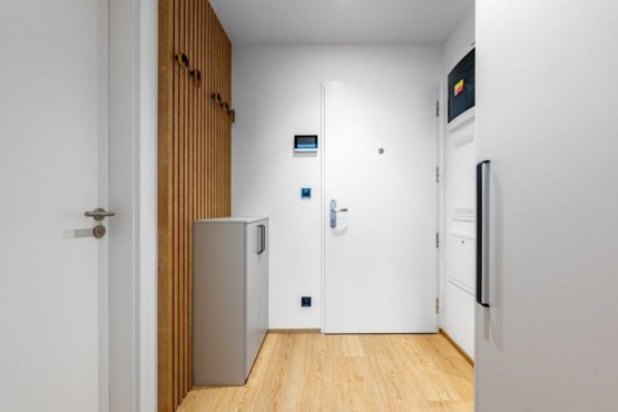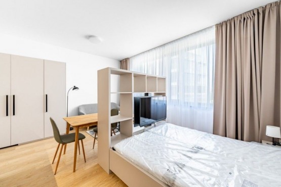 Byt ve vysokém standardu je pronajímán kompletně vybavený. Kuchyňská linka s vestavěnými spotřebiči (indukční varná deska, horkovzdušná trouba, mikrovlnná trouba, digestoř, lednice, mrazák, myčka, varná konvice) jídelní stůl s židlemi, manželská postel, sedací souprava, konferenční stolek, smart TV, skříně a police, pracovní stůl s židlí, v chodbě vestavěná skříň, v koupelně pračka a sušička.