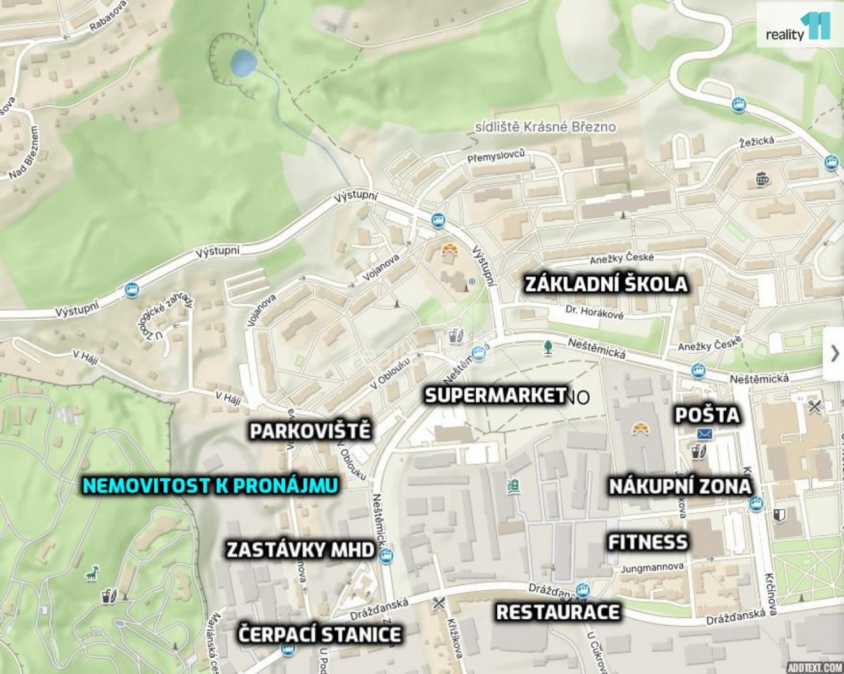 pronájem garsoniéry, která se nachází v klidné části města Ústí nad Labem, Krásném Březně, ulice V Oblouku.