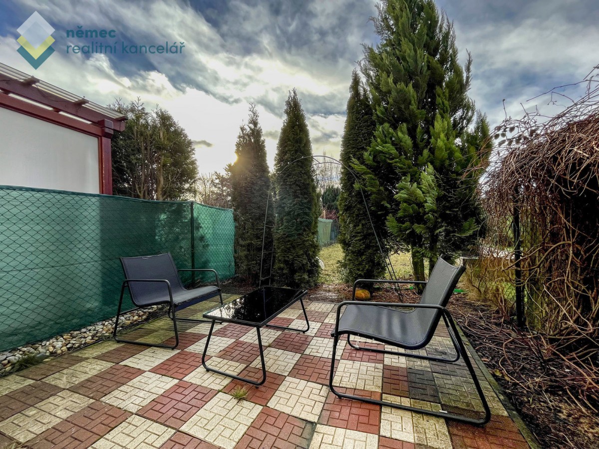 Nezávislý byt - vlastní ohřev vody a vytápění elektrickým kombinovaným kotlem se zásobníkem. Jihozápadní orientace. Na zahradě je praktický domek se sekačkou a bouda pro domácího mazlíčka.