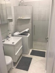 Kuchyňský kout kompletně zařízený včetně nádobí (myčka, lednice s mrazákem, kávovar, mikrovlnka, trouba, indukční deska a digestoř). Koupelna se sprchovým koutem, toaletou a pračkou. Na podlaze plovoucí podlaha, dlažba, Topení - elektrický přímotop.