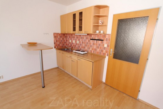 Kuchyňský kout je volně propojen s obývacím pokojem, kde je vstup na balkon. Koupelna je se sprchovým koutem a sociální zařízení WC, je zde přípojka na pračku. Na podlahách je nová vinylová podlaha nebo dlažba.