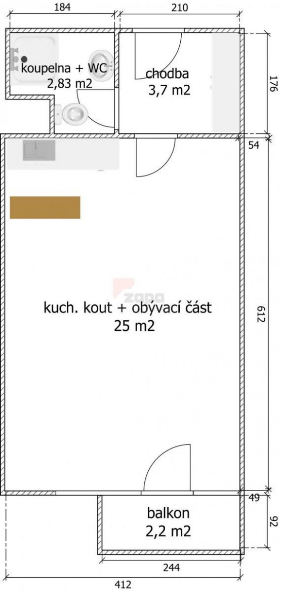 Exkluzivně nabízíme k pronájmu slunný byt 1+kk o velikosti 31, 53 m2 s balkonem 2, 2 m2 ve 3. patře novostavby včetně výtahu v ulici K prádelně, Pr...aha 10 Záběhlice, hned u sportovního areálu Hamr.