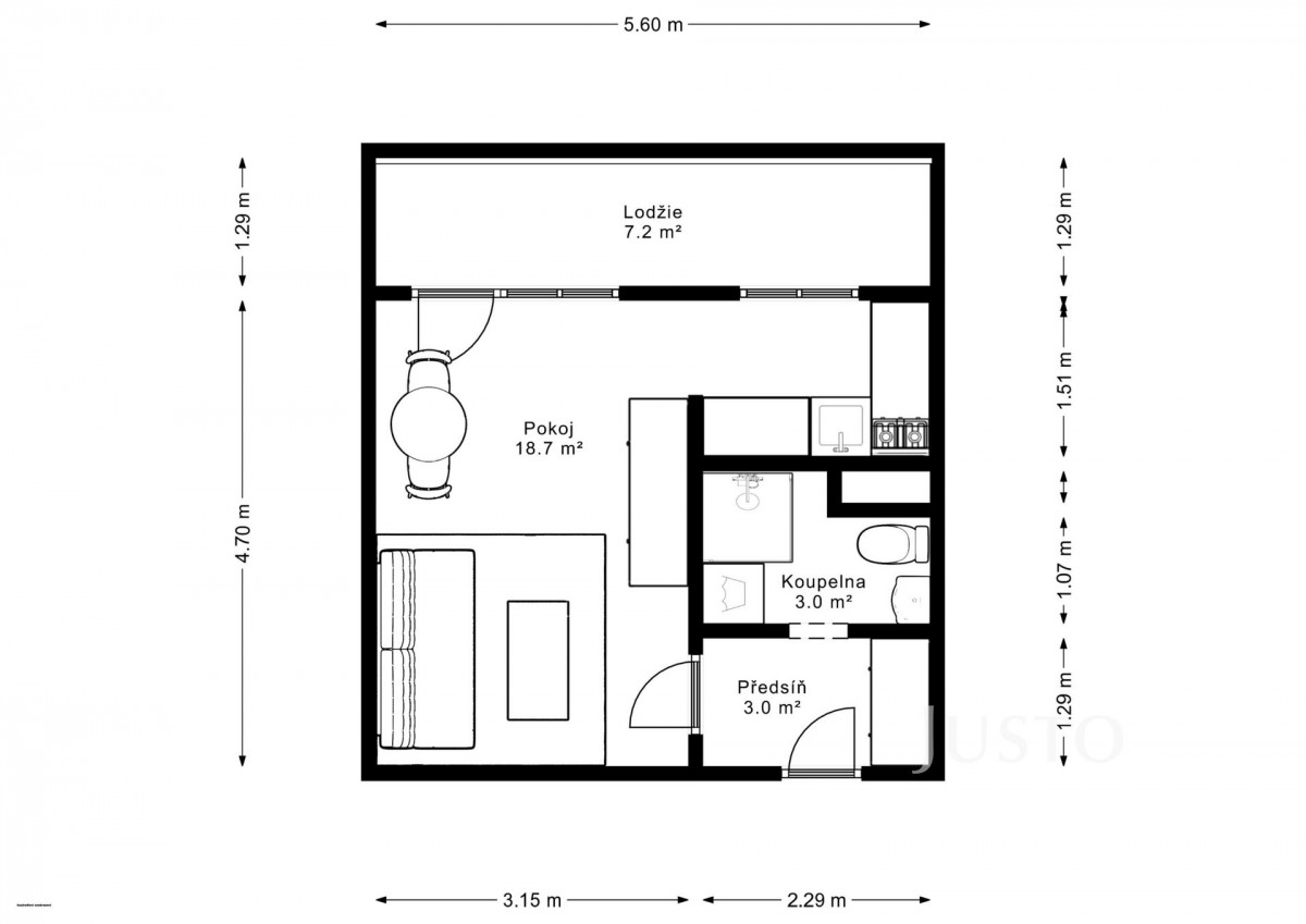 ● koupelna se sprchovým koutem, toaletou a pračkou