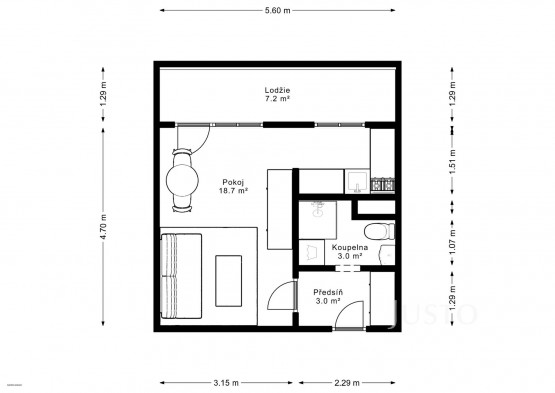 ● plnohodnotná kuchyňská linka vybavená spotřebiči (lednička s mrazákem, plynová varná deska)