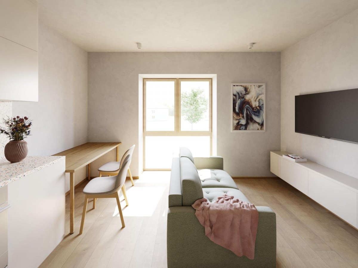 K pronájmu nabízíme byt o dispozici 1+kk a užitné podlahové ploše cca 35 m, umístěný ve 2. nadzemním podlaží bytového domu v obci Třebenice. Byt byl dokončen v roce 2025.