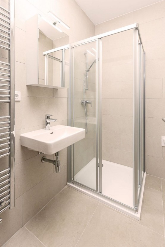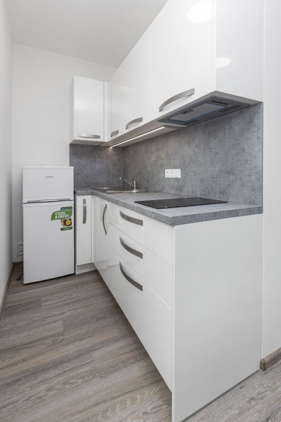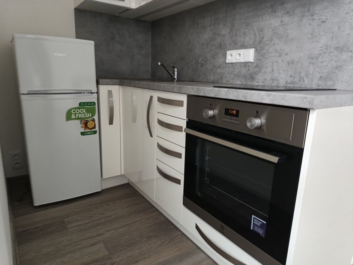 Jedná se o pronájem bytu 1+kk o celkové ploše 35 m2, který se nachází v 1. NP (první nadzemní patro) novostavby bytového domu v ulici 5. května v Kolíně. Jak bylo uvedeno výše, byt ještě nikdo neužíval, můžete tedy být prvními uživateli bytu. Byt je vybaven ledničkou, kuchyňskou linkou s varnou deskou a odsavačem par. Kuchyňská linka je nově doplněna i o vestavěnou pečící troubu. Orientace je na jihovýchod a z bytu je příjemný výhled, bez přímého pohledu do oken jiného bytu. K bytu náleží sklep a parkovací stání umístěné o patro níže bytového domu (přesun do bytu je v teple a suchu).