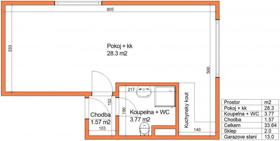 1+kk, 35 m2, cihlová, OV, 1. podlaží