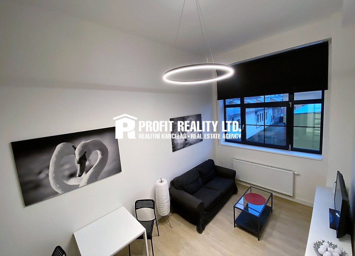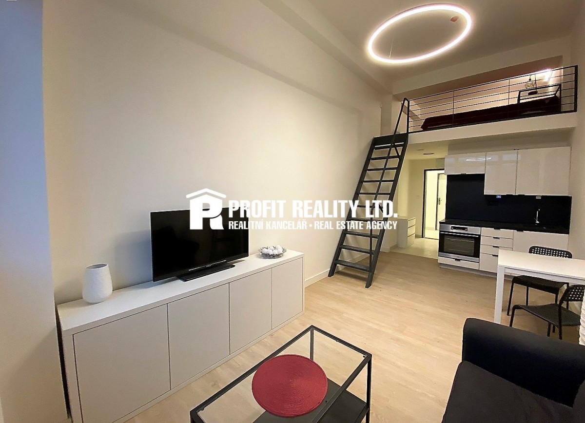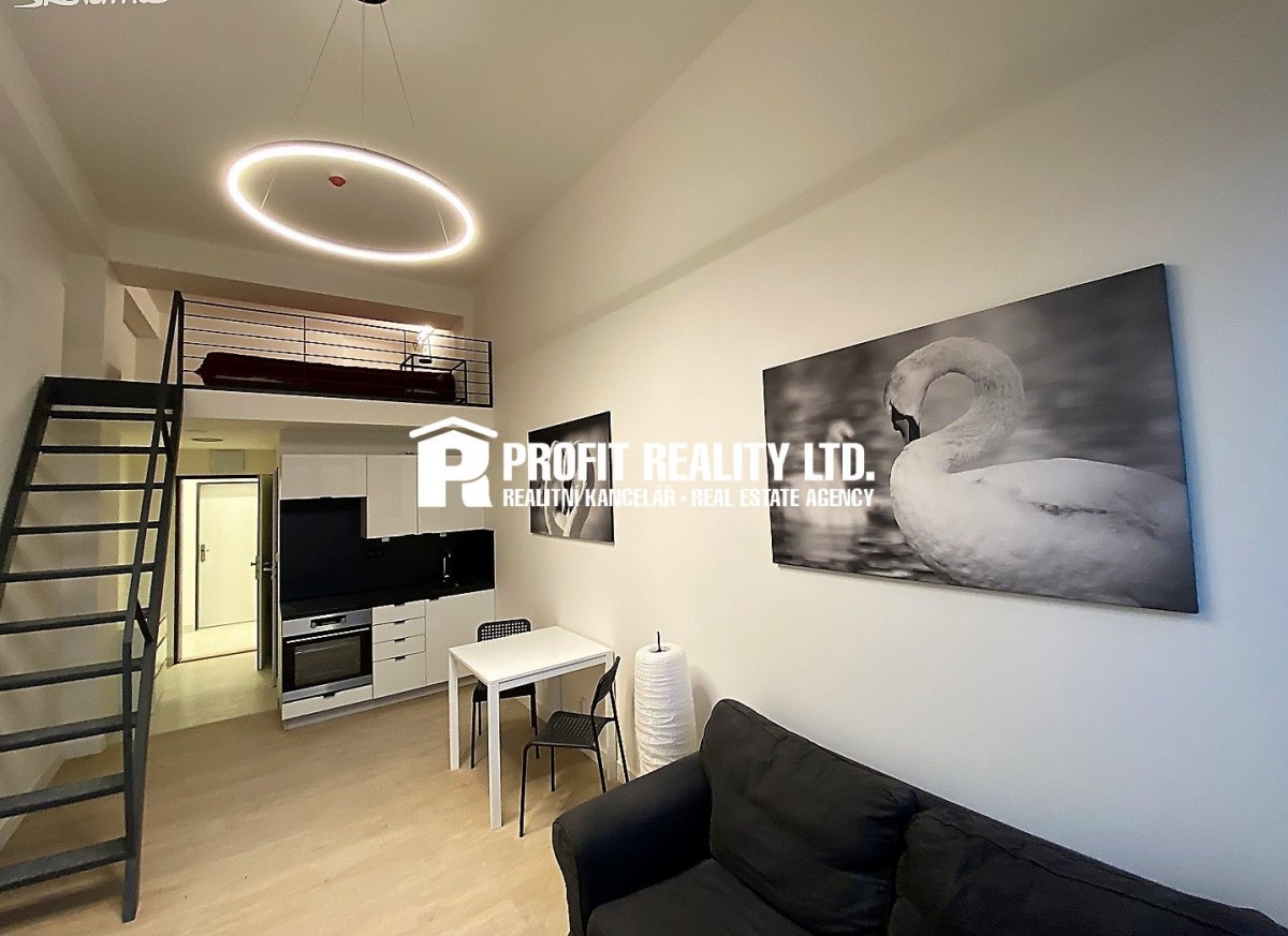 Nabízíme k pronájmu zařízený byt 1+kk cca 35 m2. Jedná se o nový loftový apartmán vytvořený v bývalých továrních halách. Apartmán nabízí obrovská tovární okna a vysok...é stropy se zavěšenými designovými svítidly. Je zařízen moderní kuchyní, spotřebiči a vestavěným patrem vhodným na spaní, nebo pro uložení věcí. Budova je vybavena wifi internetové připojeníem, který je v základním nastavení v ceně nájmu. Nezbytnou součástí projektu je moderní protipožární a evakuační systém. Nájem je 11950 Kč + služby 3450 Kč (1 - 2 osoby), osoba navíc 1500 Kč, kauce 15400 Kč, provize 15400 Kč. Parkování v objektu 1000 Kč. Vhodné pouze pro nekuřáky bez zvířat. Volné ihned.