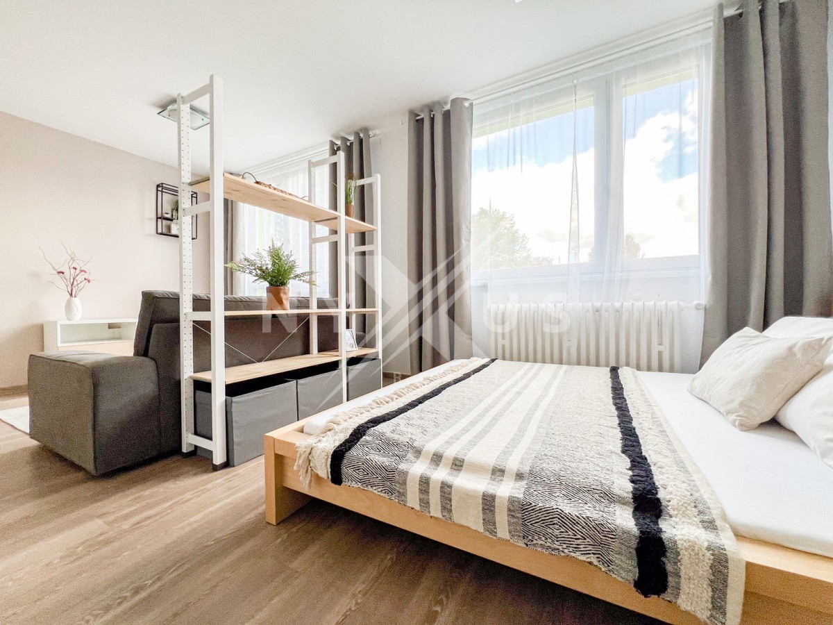 Nabízíme k pronájmu moc hezký, kompletně zařízený byt 1+kk, 35 m2 s komorou, po celkové rekonstrukci, na velice klidném místě přímo u Ďáblického háje.