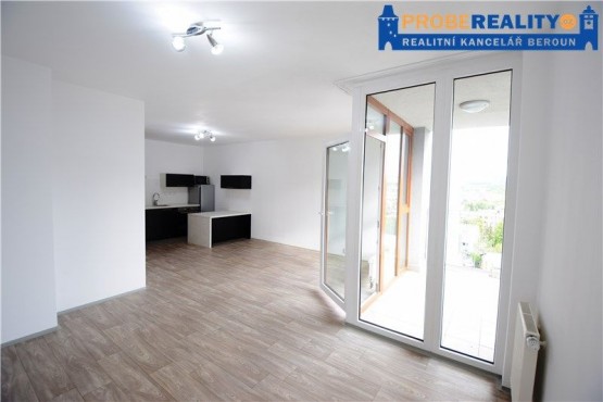 - hlavní obytný prostor - kuchyňská linka (s lednicí, digestoří, el. troubou a skloker. deskou, mikrovl. troubou) s přímým vstupem na prostorný balkón s moc hezkým výhledem a JZ orientací.