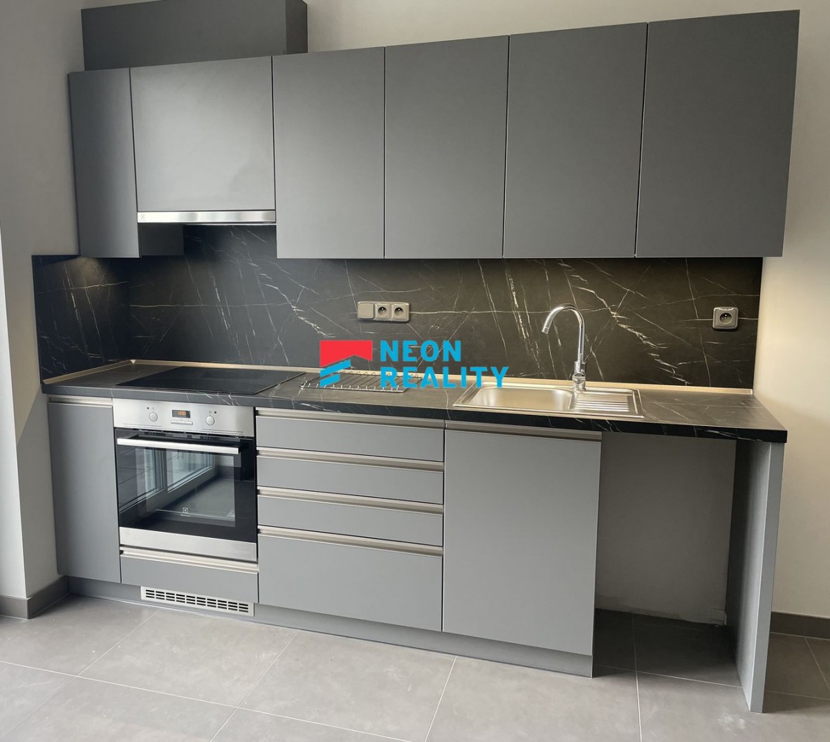 Je zde obývací pokoj s kuchyňskou linkou, která je vybavena led světly a vestavěnými spotřebiči (indukční deska, ele. trouba, digestoř). Z kuchyně je možnost vstupu na balkón. V koupelně je vana, toaleta a místo pro pračku a sušičku.