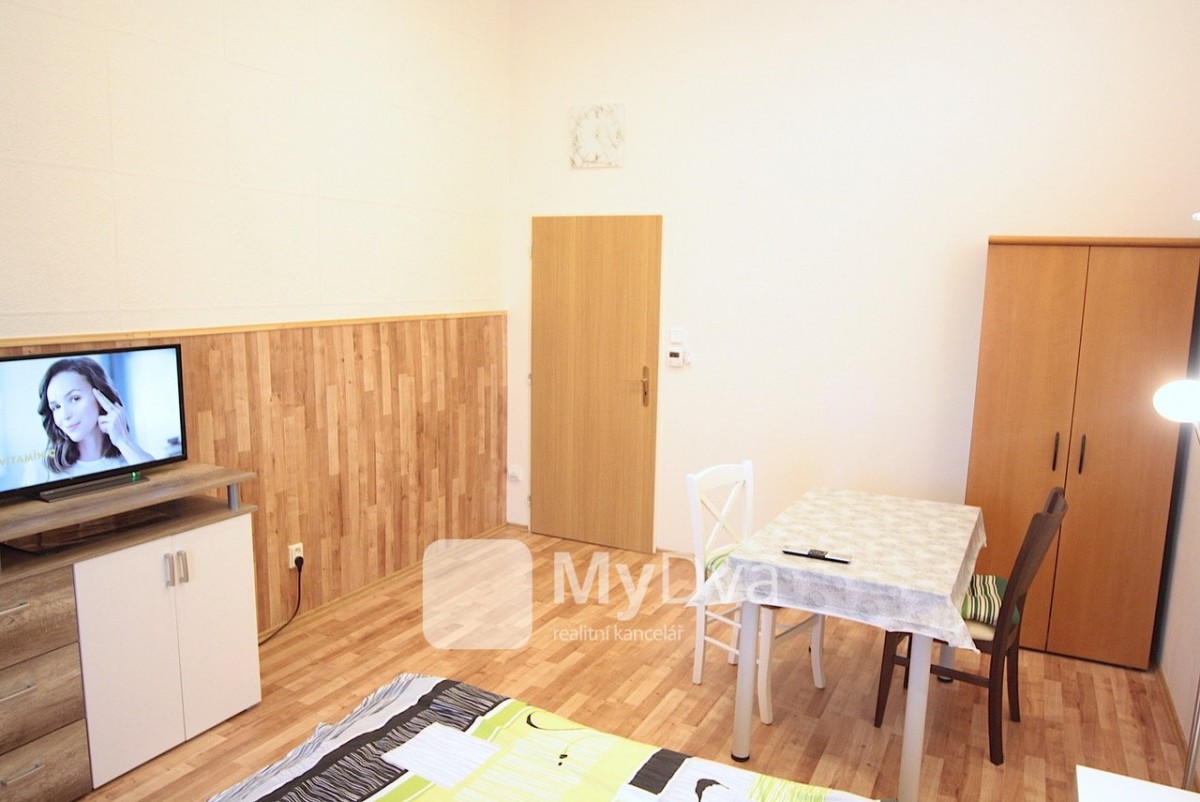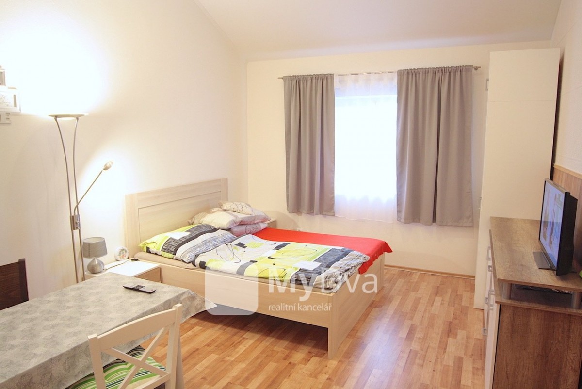 K pronájmu Vám nabízíme byt o dispozici 1+kk a o velikosti 36m2 ve 3. nadzemním podlaží. Byt se skládá z předsíně s kuchyňským koutem, prostorné koupelny se sprcho...vým koutem, velkého obývacího pokoje. Byt se pronajímá nevybavený, vybavení na fotkách je nájemníka.