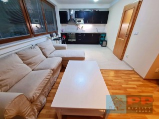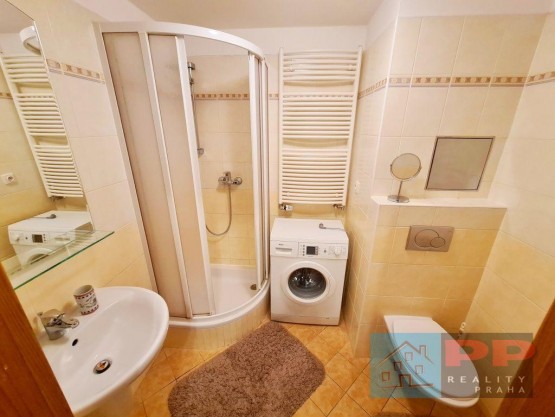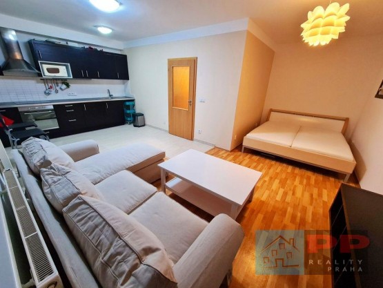Byt je orientován do klidného,  upraveného vnitrobloku a nachází se v 1.  patře bytového domu včetně výtahu.  K dispozici je plně vybavená kuchyňská linka včetně vestavěné lednice,  sklokeramické varné desky,  horkovzdušné a mikrovlnné trouby.  Dále je v bytě pohovka,  konferenční stolek,   TV stolek a postel.  Pračka je umístěna v koupelně.   V předsíni se nachází velká vestavěná skříň.