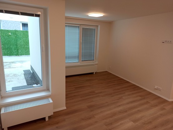 Pronájem pěkného nově vystavěného bytu 1kk o ploše 36, 2 m2 a terasa 24 m2, ve zvýšeném přízemí směrem do vnitrobloku. Při vážném zájmu o dlouhodobý pronájem je možné na přání byt upravit na ...e="2 pokoje + kuchyňský kout">2+kk. V bytě je obývací pokoj s kuchyňským koutem s novou kuchyňskou linkou včetně vestavěných elektro spotřebičů (myčka nádobí, sklokeramická varná deska, pečící trouba, lednice). Dále je v bytě koupelna se sprchovým koutem a toaletou, komora, chodba. Na oknech, která směřují do vnitrobloku jsou instalovány žaluzie. Vlastní elektrický kotel na podlahách vinyl a dlažba. K ceně se připočítávají poplatky za služby 730, - (vodné stočné, odpad, úklid a energie společných prostor) a vlastní záloha na elektřinu 2, 5 tis. , tyto platby jsou zálohové budou vyúčtovány podle skutečné spotřeby. Dále již nic navíc neplatíte. Zajímavý byt je umístěn v nově přestavěném domě v ulici Na pěšinách, pět minut od domu je tramvajová zastávka a stanice metra Kobylisy. Veškerá občanská vybavenost v místě. Poblíž domu se nachází vyhledávané koupaliště Stírka. Výborná dopravní dostupnost. Tento byt nebyl nikdy pronajímán, budete první nájemník.