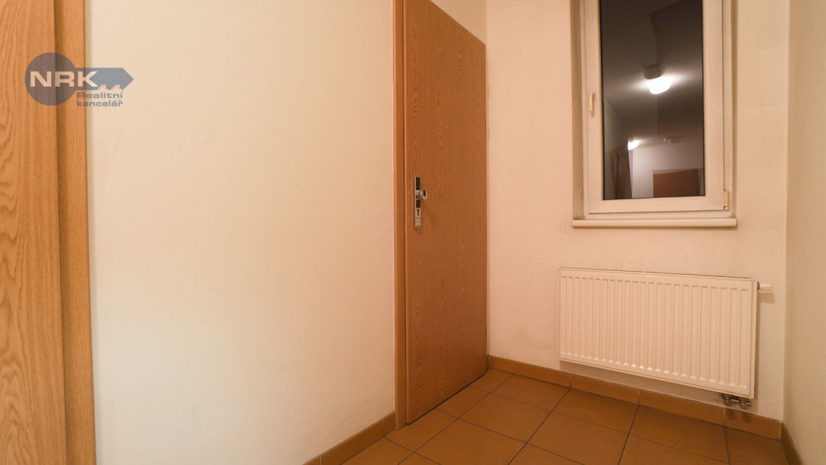 Byt, ... který má okna orientované do klidného vnitrobloku, je dispozičně řešen prostorným obývacím pokojem s kuchyňským koutem, koupelnou se sprchovým koutem a předsíní. K užívání se také přenechává komora o ploše 2 m² u výtahu přímo na patře bytu.