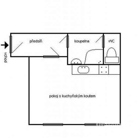 1+kk, 40 m2, cihlová, OV, 1. podlaží