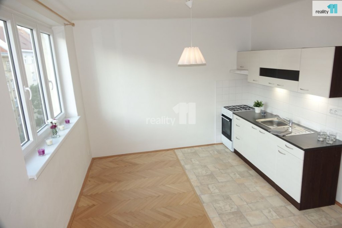 Poplatky 1. 675 Kč / 2 osoby + převod el. energie, plynu. . Reality 11 Vám zprostředkují pronájem světlého bytu 1+kk po kompletní rekonstrukci o velikosti 40 m², která se nac...hází v 6. NP (šesté nadzemní patro) cihlového domu včetně výtahu. Byt se skládá z chodby, obývacího pokoje s kuchyňským koutem, koupelny se sprchovým koutem a samostatného sociální zařízení WC. Nová plastová okna s orientací do klidné ulice, na podlahách jsou parketová podlaha, dlažba a PVC. Byt je vybaven kuchyňskou linkou a kombinovaným sporákem. Vytápění bytu je lokální WAW, ohřev vody pomocí bojleru. V domě zaveden UPC internetové připojení. Veškerá občanská vybavenost v okolí. Klidné a moc hezké bydlení s výbornou dopravní dostupností. Doporučujeme. Ev. číslo: 27588. Energetický štítek: E