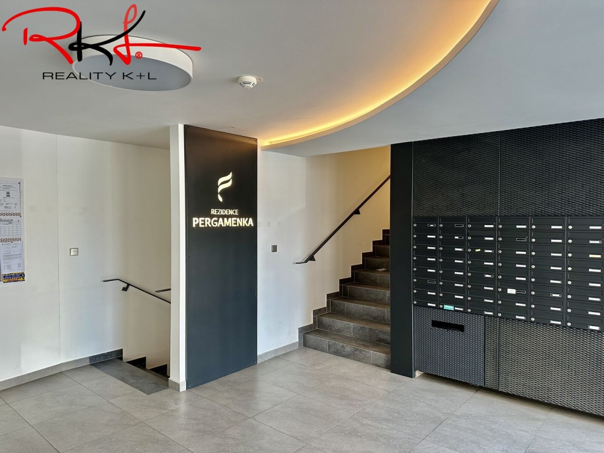 Byt ...o dispozici 1+kk, který se nachází v 6. patře bytového domu, v ulici U Pergamenky. Výměra bytu činí 34, 8 m2 + 3, 4 m2 lodžie. Vnitřní dispozice: Vstupní chodba, vstup do obývacího pokoje/ ložnice spojeného s kuchyňským koutem, nabízí přímí vstup na lodžii, kuchyňský kout vybaven moderními vestavnými spotřebiči. Koupelna se vanovým koutem a toaletou a místem na pračku se sušičkou. Byt se pronajímá nevybavený.