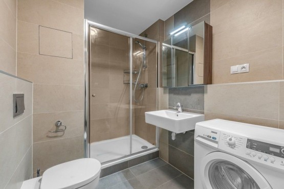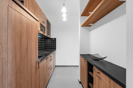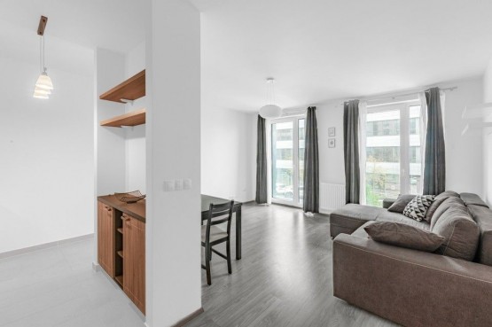 Byt je plně vybaven nábytkem, kuchyňskou linkou s lednicí s mrazákem, mikrovlnnou troubou, digestoří, indukčním sporákem a rychlovarnou konvicí, jídelním stolem se židlemi, rozkládacím gaučem, vestavěnou skříní ve vstupní hale, koupelnou se sprchovým koutem, toaletou a pračkou. Součástí je chytré ovládání domácnosti, chytrý systém větrání, detektor kouře a plynu, chytré topení spočívá v možnosti nastavení teploty přes mobilní aplikaci. Komfortní vstup do domu, zeleného vnitrobloku a podzemních garáží na čipové karty.